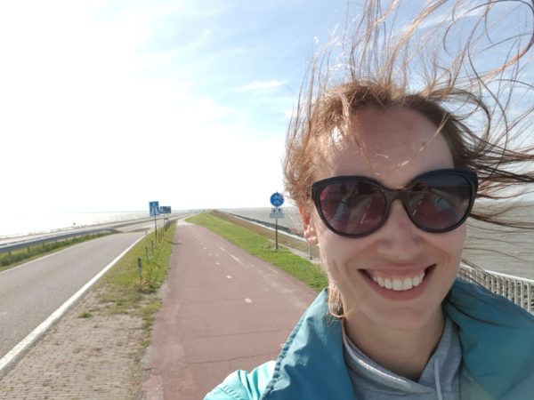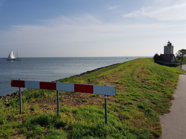 De hardste wind ooit blaast recht met ons mee. Het is ongelooflijk. Bijna zonder te trappen vliegen we over de Afsluitdijk.