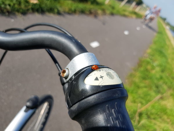 Het brede fietspad hebben we helemaal voor ons alleen, maar we zijn niet de enigen hier. Vlak naast ons razen auto’s op een vierbaansweg waar je 130 mag. Ze maken een daverend kabaal en laten de hele dijk dreunen.